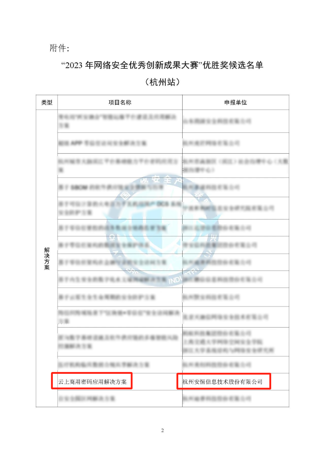 安恒信息在分站赛上所提报的“云上商用密码应用解决方案”荣誉获奖。在当今数字化时代,云上商业活动愈发频繁,但随之而来的商业数据风险也逐渐显现。为此,安恒信息团队打造了这一创新解决方案,将密码应用与云安全相结合,为商业数据的保护提供了有力支持。该方案运用云计算虚拟化、服务化的特点,将商用密码能力抽象为各类服务,并通过一套服务平台向用户进行统一提供,使用户可以像使用虚拟机、数据库等其它云资源一样灵活调用商用密码能力。同时支持所有密码服务的统一管理,帮助用户快速完成云上商用密码能力的应用,做到密码能力的服务化、多样化、统一化。