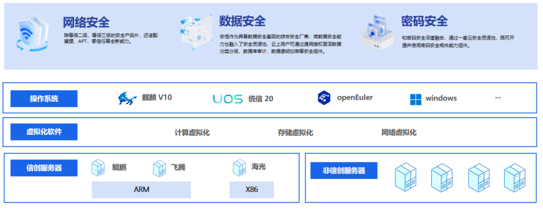 安恒云-天池针对私有云、行业云及多云场景,满足租户在业务上云后所产生的安全防护及合规需求,通过虚拟化技术,集成网络安全、数据安全、密码安全等能力,一站式满足租户多样化的云上安全需求。